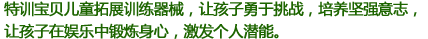 滄州華北特訓(xùn)器械有限公司成立于2002年,是專業(yè)研發(fā)生產(chǎn)心理行為訓(xùn)練器械、拓展器械、拓展器材、攀巖、兒童拓展器械的專業(yè)型企業(yè),并通過(guò)ISO-9001質(zhì)量管理體系認(rèn)證及ISO-14001環(huán)境管理體系認(rèn)證,致力于各職業(yè)群體提供的心理行為訓(xùn)練器械、拓展器械、攀巖、兒童拓展器械等設(shè)備,使之不斷提升心理健康水平、充分開(kāi)發(fā)自我潛能。我公司竭誠(chéng)為廣大客戶提供專業(yè)化各類心理行為訓(xùn)練器械相關(guān)產(chǎn)品和服務(wù)。